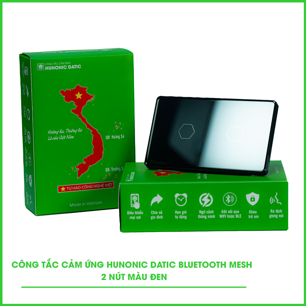 Công Tắc Cảm Ứng 2 Nút Bluetooth Mesh Hunonic Datic Màu Đen Giá gốc là: 600.000₫.Giá hiện tại là: 498.000₫.
